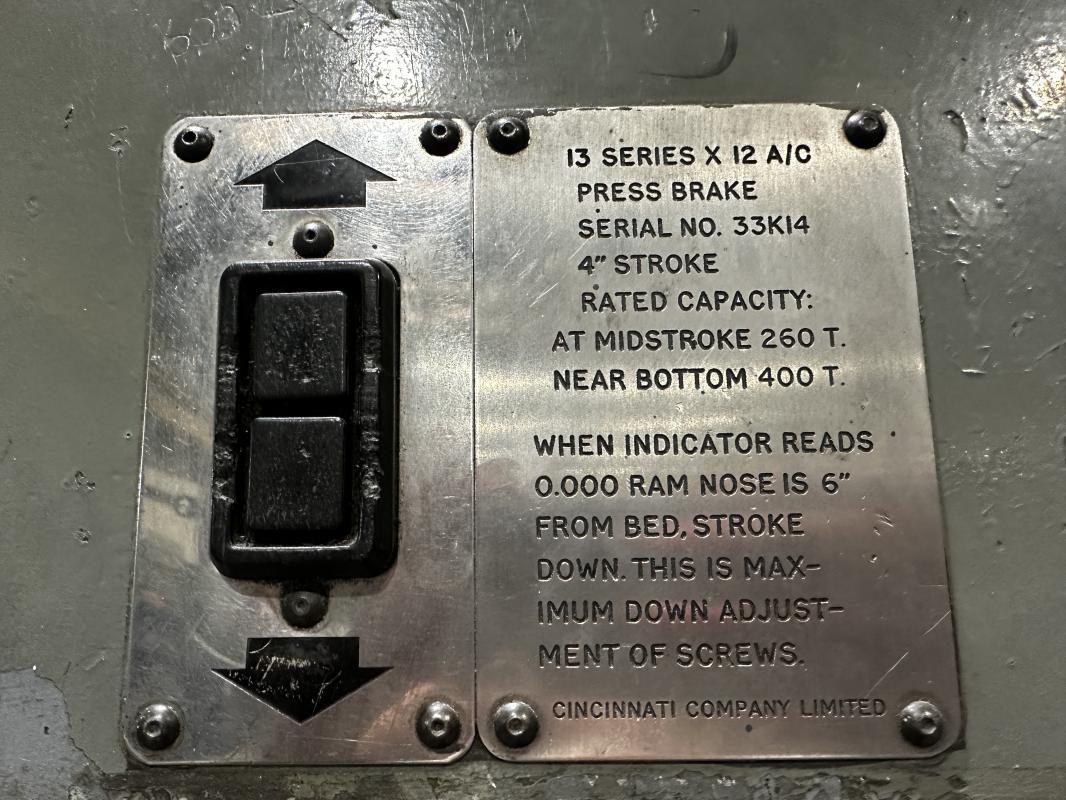 Cincinnati 13 series press brake (400T x 4.8 metre) with tooling