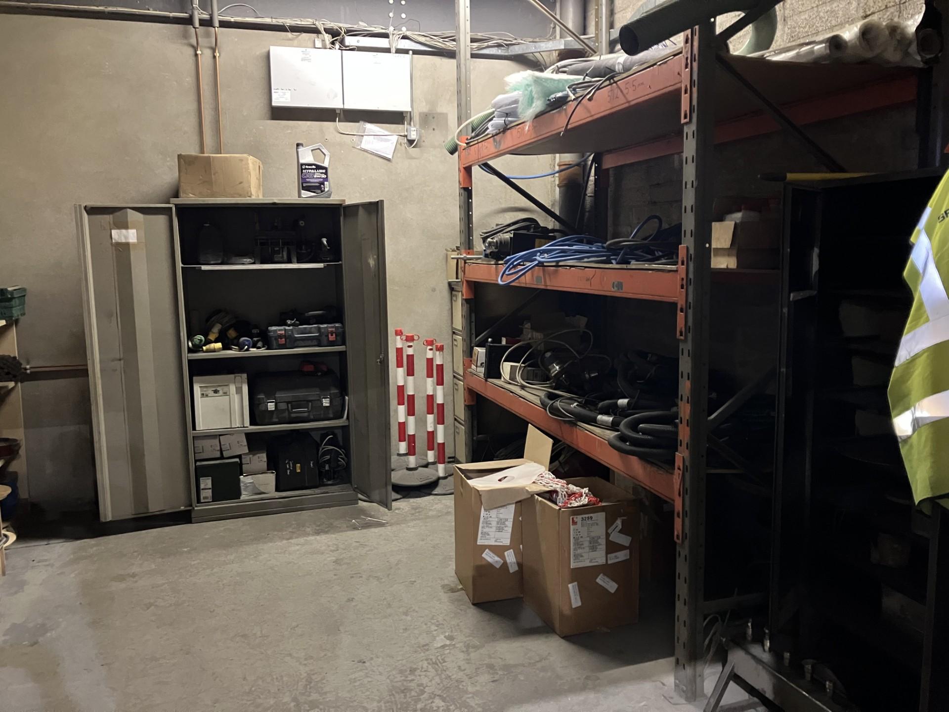 3 Store contents - includes hand tools, bolts, fixings, compressor, packing and 3 tipping skips
