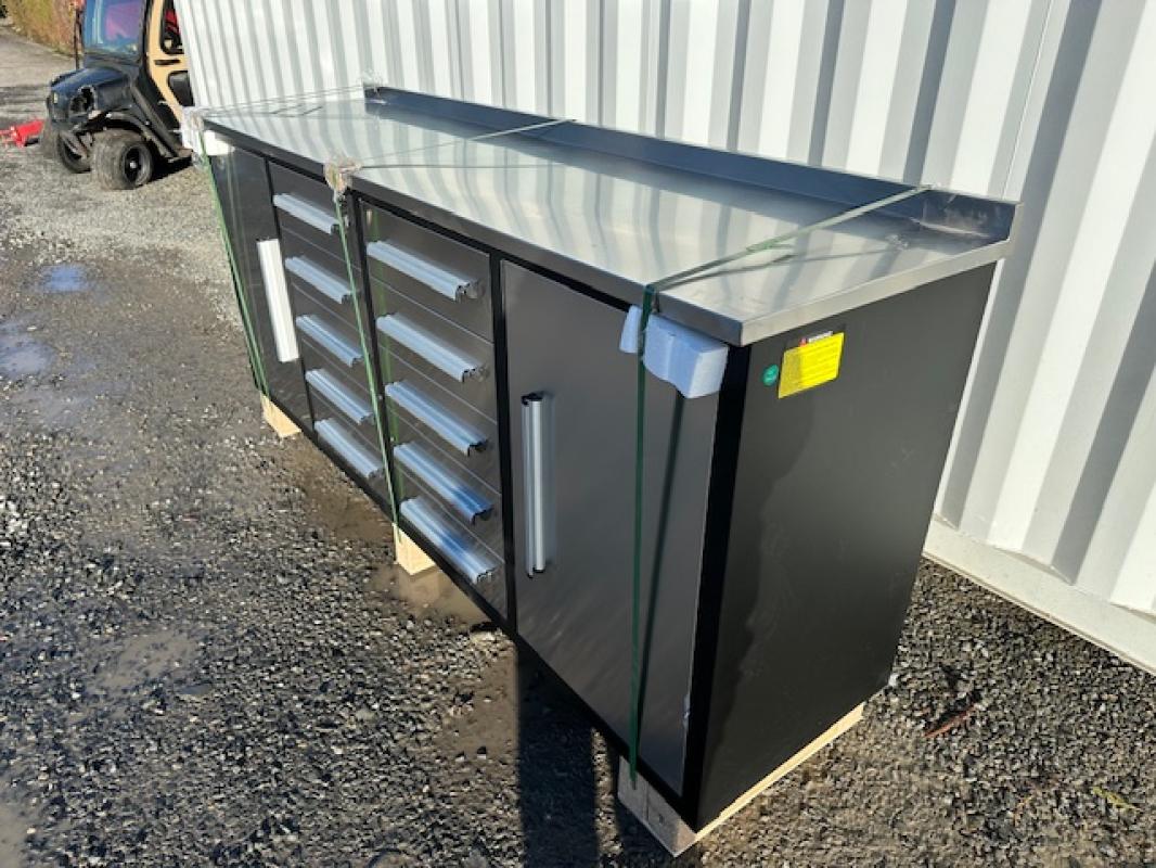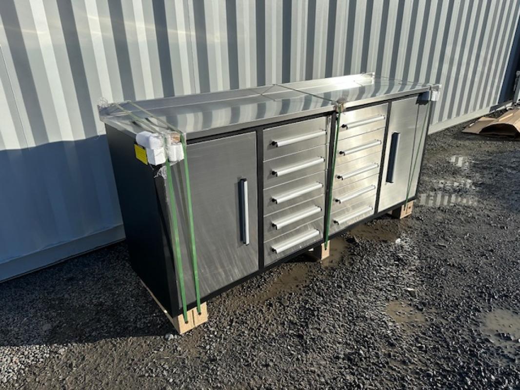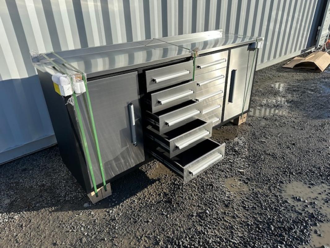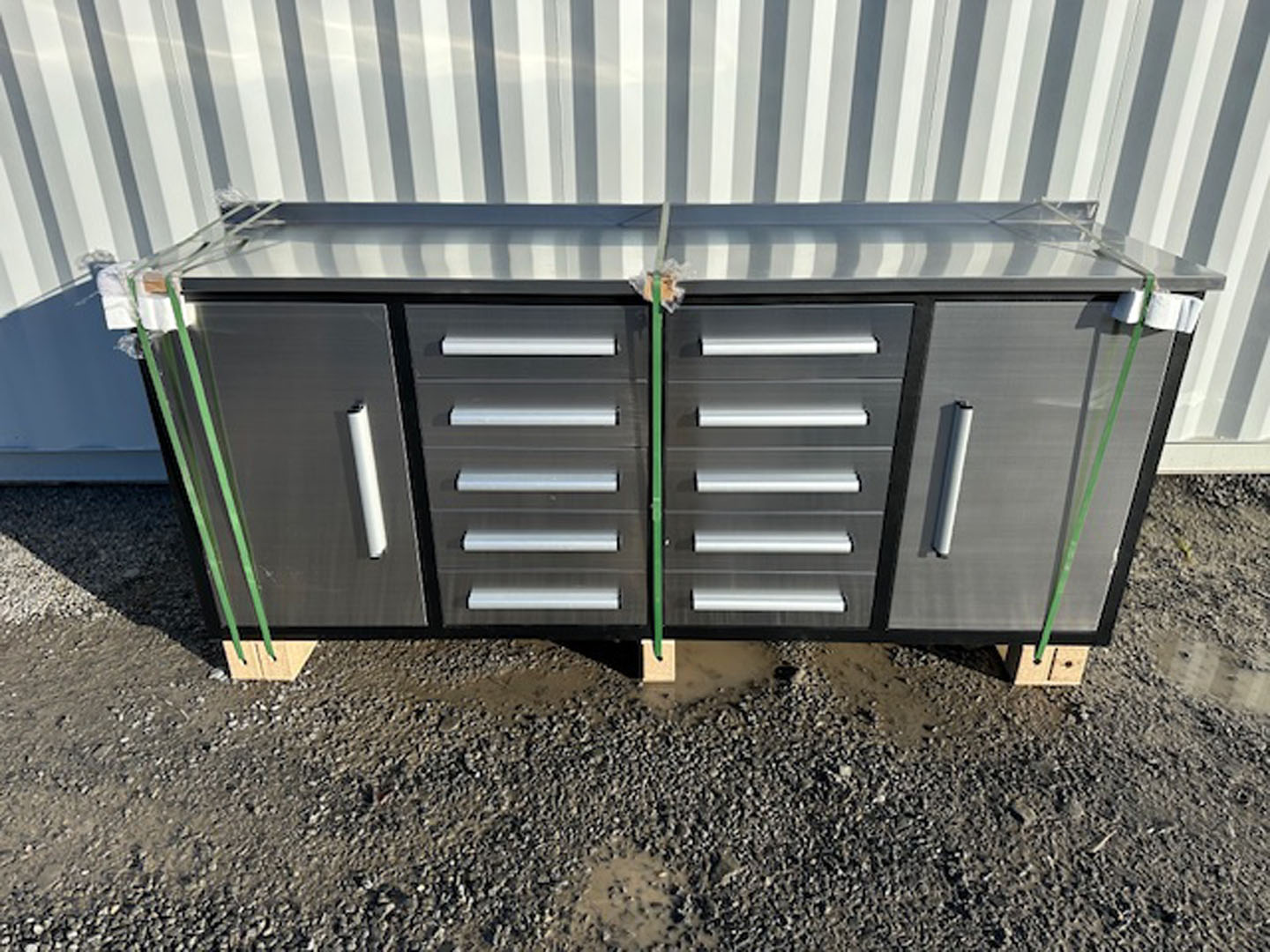 New Steelman 7FT Work Bench with 10 Drawers . 87*23*39 inch. Packed in Plastics. Drawers with lock and Anti-slip inners. Using new 3 rail sliding.Stainless steel table top.