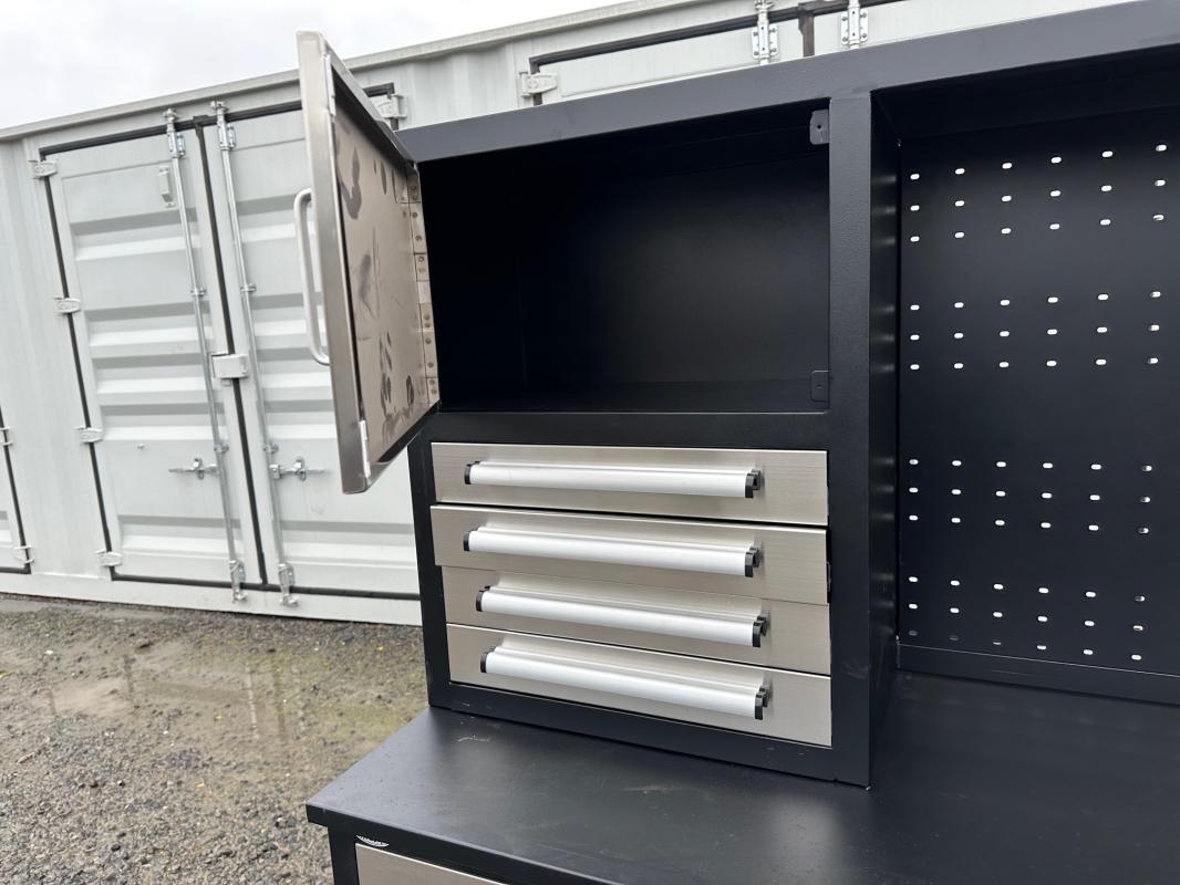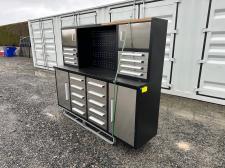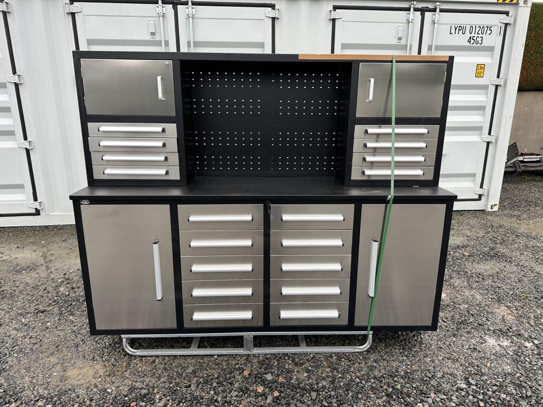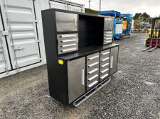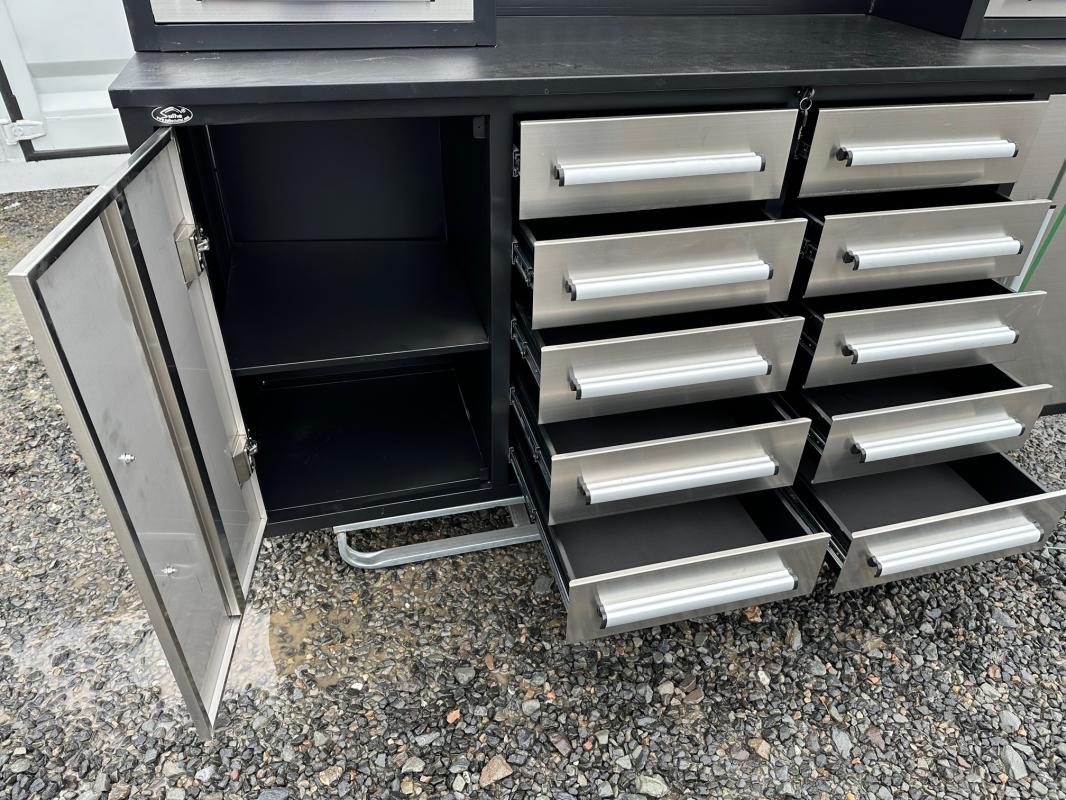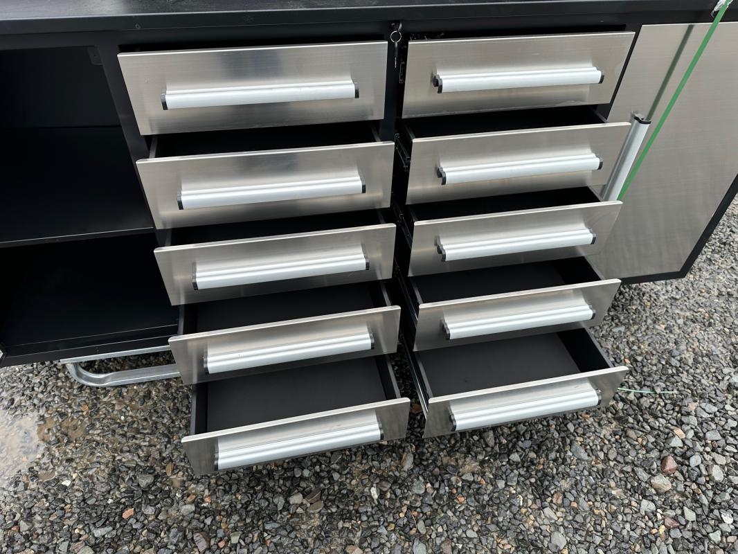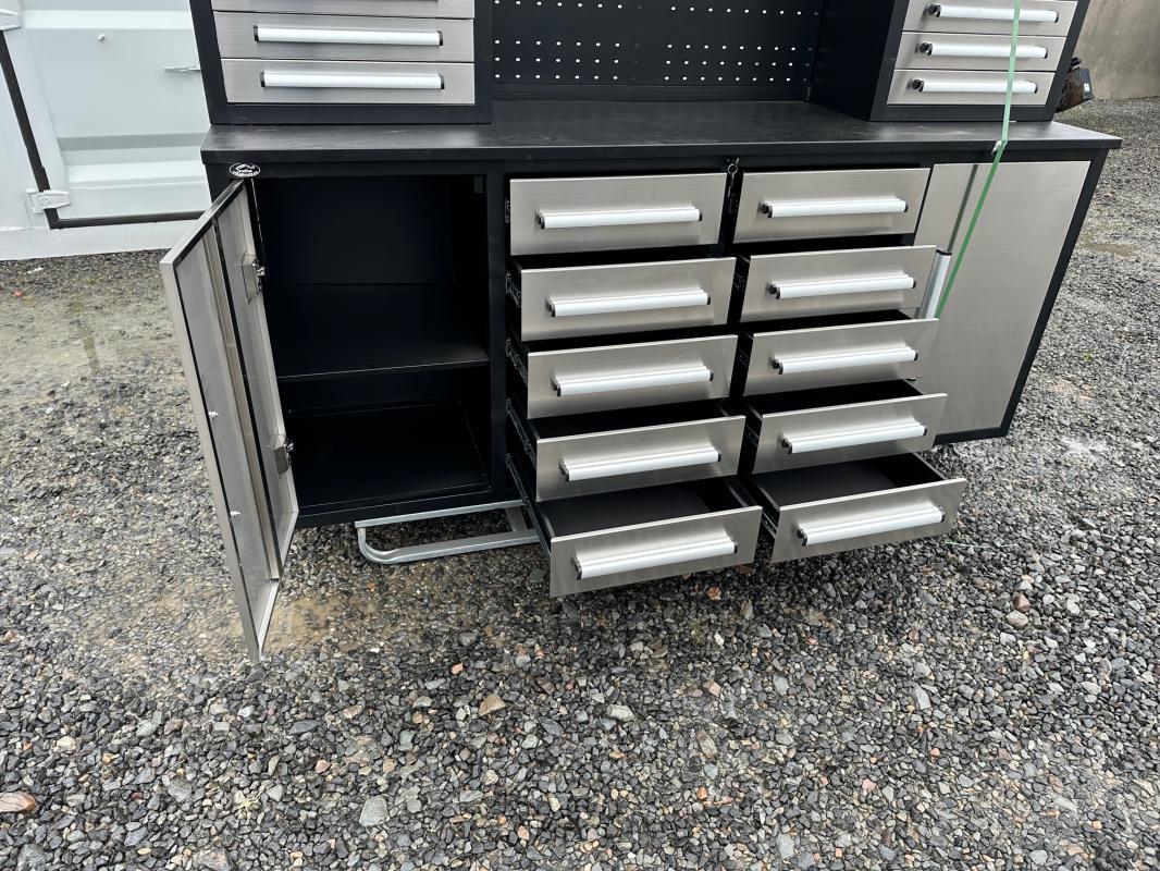 New 2024 7FT Work Bench with 18 Drawers Hi Back.Packed in Plastics.Drawers with lock and Anti-slip inners. Using new 3 rail sliding. Stainless steel