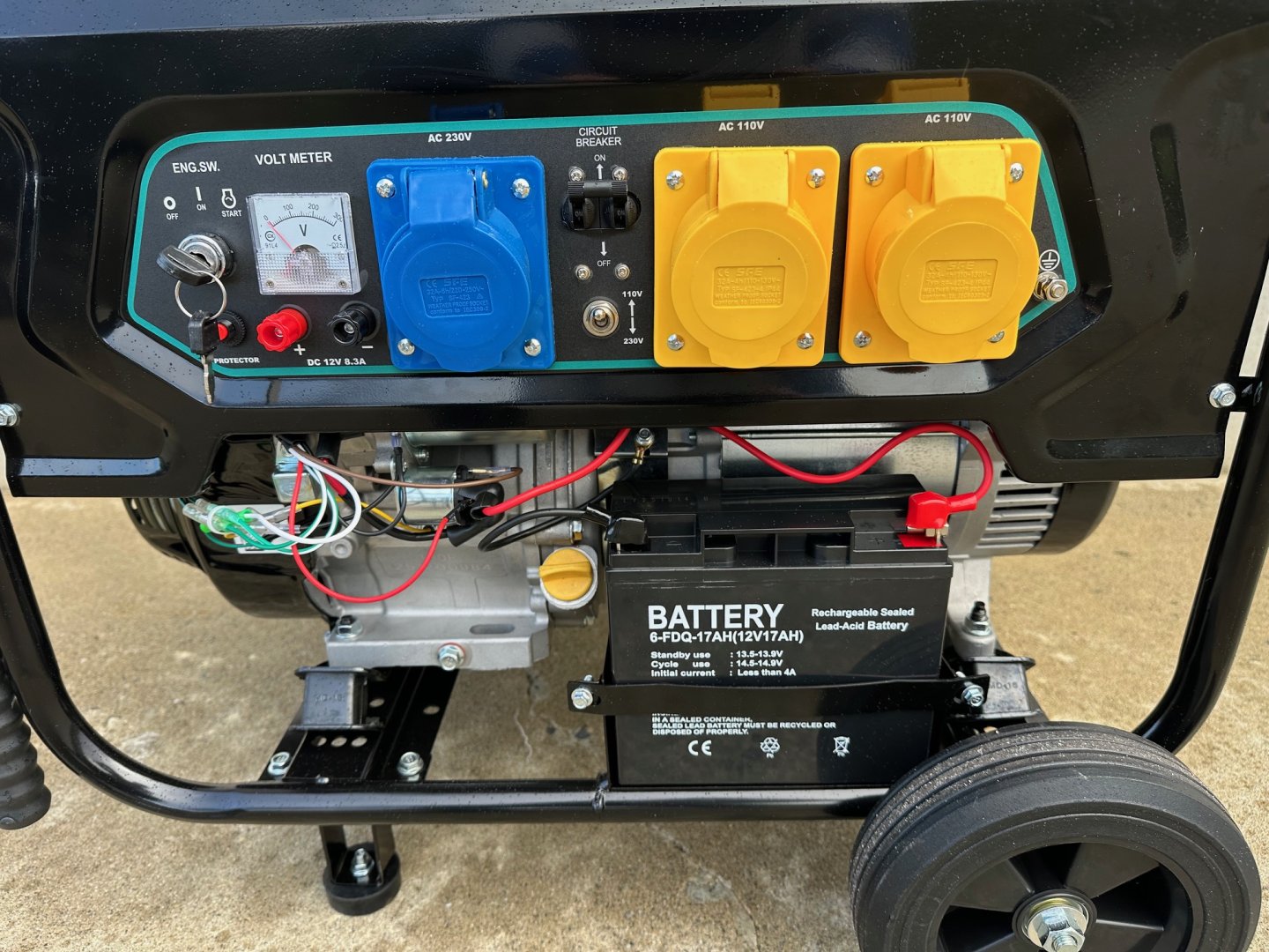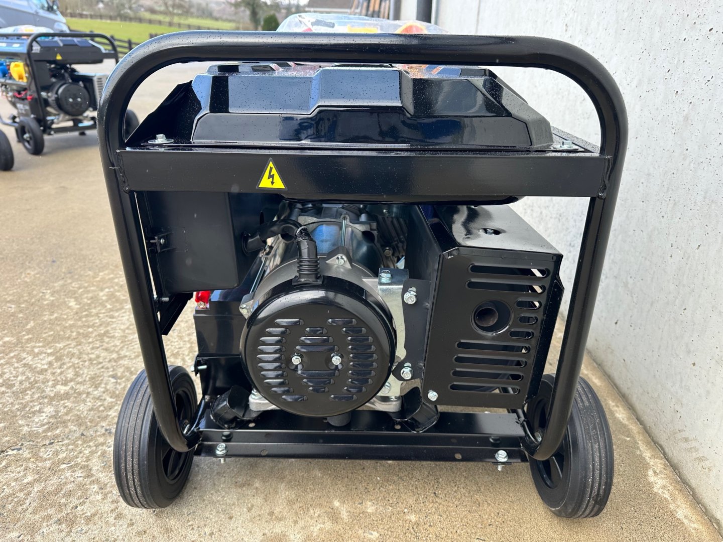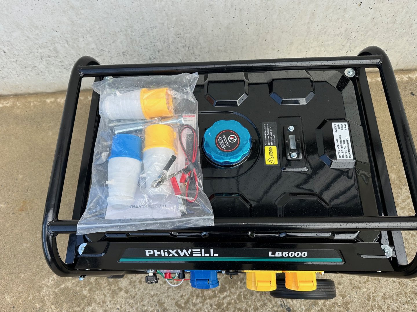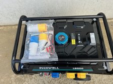 New Phixwell LB6000 Heavy-Duty Portable Petrol Site Generator c/w Operators Manual, Double Ended Spanner, Long Reach Spark Plug Box Wrench, 2 x 32 Amp 110V Plug Sockets and 1 x 32 Amp 230V Plug Socket, 12V Battery Charging Leads, Wheel Kit and Handles for Easy Transport.