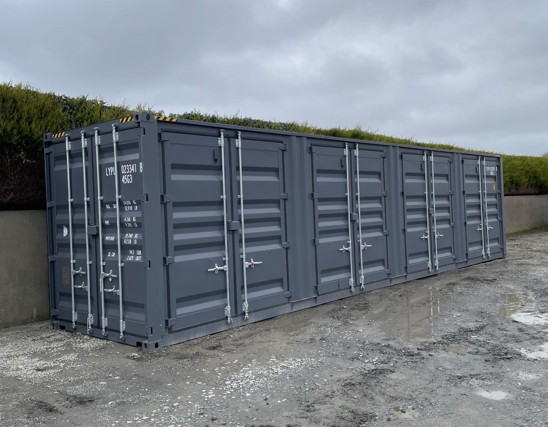 New / One Trip 40ft High Cube Multi-Door Shipping Container c/w 4 Side Opening Doors, End Doors, Lock Box, Lifting Eyes & 27mm Marine Plywood Floor.
