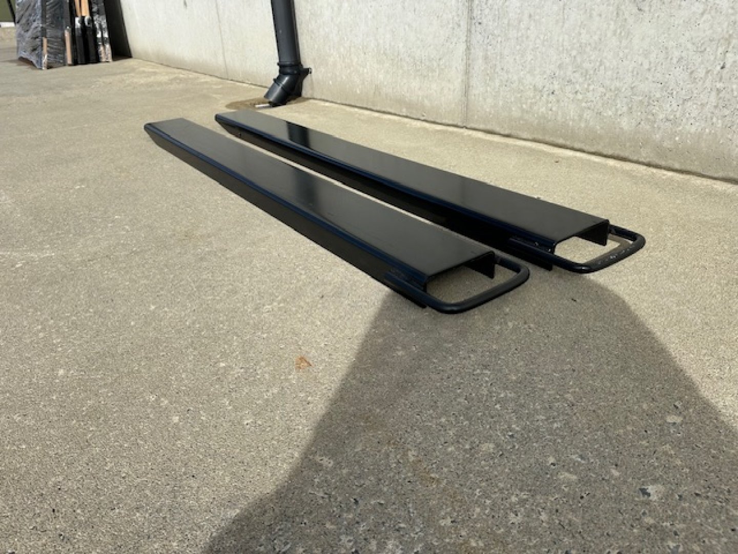 New Forklift Extension Toes, Heavy-Duty Pressed Steel, Tapered and Shaped Tips, Rounded Edges for Easy Load Entry, Black Powder-Coated Finish and Fixed Rear Stop Lugs. (Qty of 2)